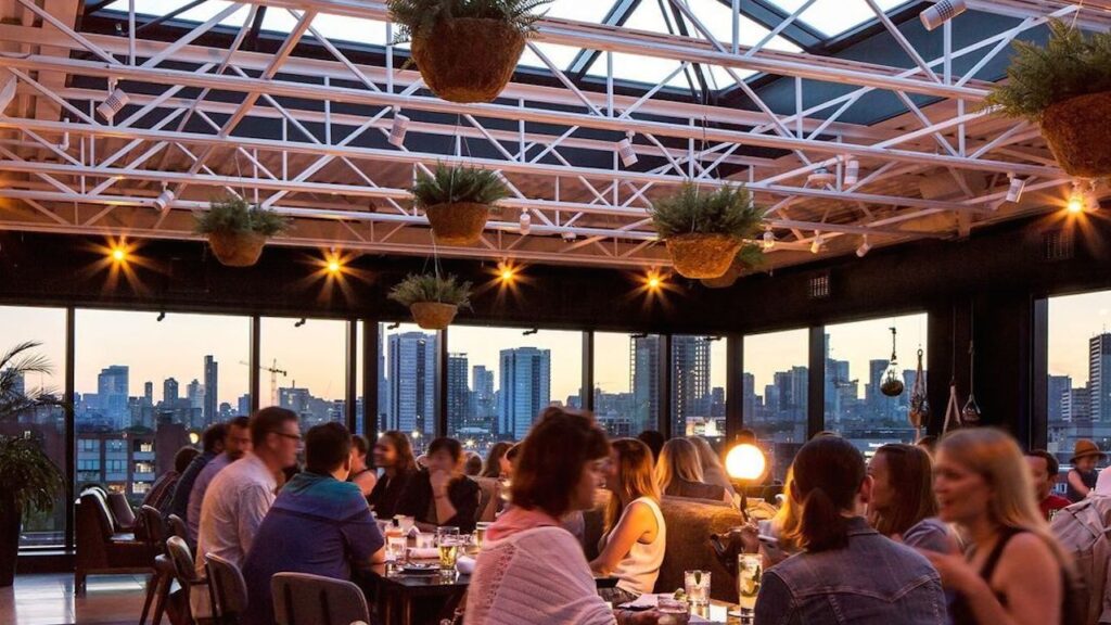 Sip cocktails while taking in skyline views from a cozy glass atrium. The vibrant city lights and relaxed, elegant atmosphere make it the perfect place to toast the year ahead.
