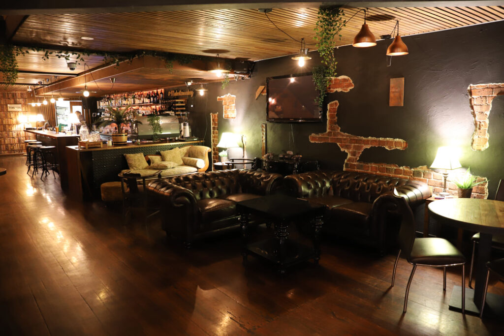 Behind what looks like a vintage bottle shop in a shopping mall, this speakeasy reveals a moody, classic-inspired setting with creative cocktails.
